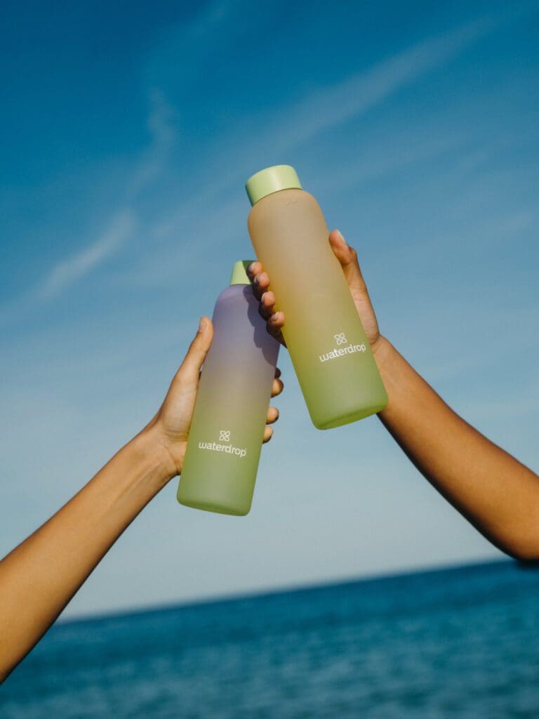 A Waterdrop minden italkockájához hozzá illő, letisztult formavilágú boroszilikát üveg vagy nemesacél kulacsot kínál a műanyag palackok kiváltására. Az ICE TEA Microdrinkekhez háromféle nyári hangulatú színátmenetes üvegkulacs is készült, könnyen tisztítható, mosogatógépben mosható palackkal és rozsdamentes acélkupakkal, amellyel tökéletes kiegészítője lehet bármely nyári szettnek.