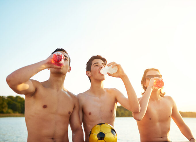Alapszabály: ha szomjas vagy, már késő. Nyáron ne várd meg, míg kiszáradsz – kortyolj rendszeresen. A víz legyen az alap, ne a sör vagy az energiaital. Az ásványvíznél figyelj a nátriumtartalomra is – a túl sok só megdobja a vérnyomást. A magyar átlag férfi háromszor annyi sót eszik, mint kellene – és nem a sószóróból, hanem a feldolgozott kajákból (kenyér, felvágott, pizza, chips). Tarts mértéket!
